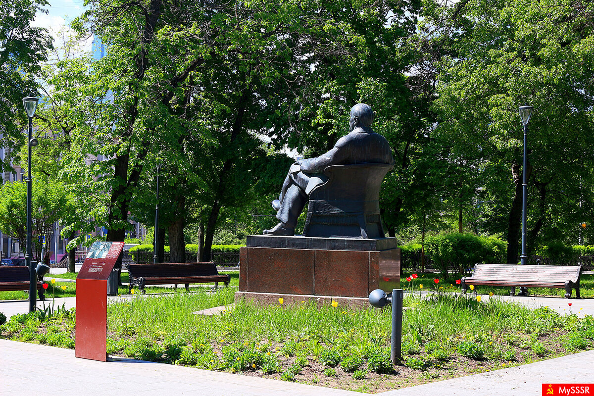 Парк Декабрьского восстанияПарк Декабрьского восстания в Москве. Памятник В.И. Ленину. Май 2024. В 1963 году в парке Декабрьского восстания был возведён памятник В.И. Ленину. Авторы творения - скульптор Б.И. Дюжев, архитектор Ю.И. Гольцев. Памятник выполнен из кованой меди и установлен на постаменте из красного гранита. Владимир Ильич изображён сидящим в кресле. Такое видение отличается от общепринятых экспрессивных вождя пролетариата. В памятнике читается умиротворение и спокойствие. |