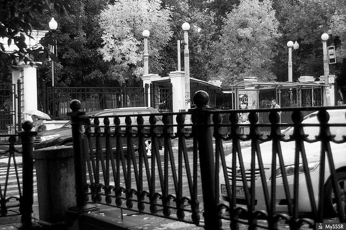Милютинский сад в Москве. Вид с Покровскоо бульвара. Сентярь 2011. PENTAX P5; Compact auto zoom S multicoated f=28-70mm 1:3.5-4.5; MARUMI Y2; FOMAPAN profi line action 400; Фотопроект.