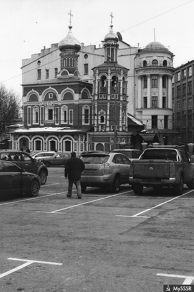 Славянская площадь в Москве. Храм Всех святых на Кулишках. Январь 2012. Canon EOS 33; CANON LENS EF 50mm 1:1.8 II; B+W; Свема РЕПОРТЕР 200; Стандартный №2.